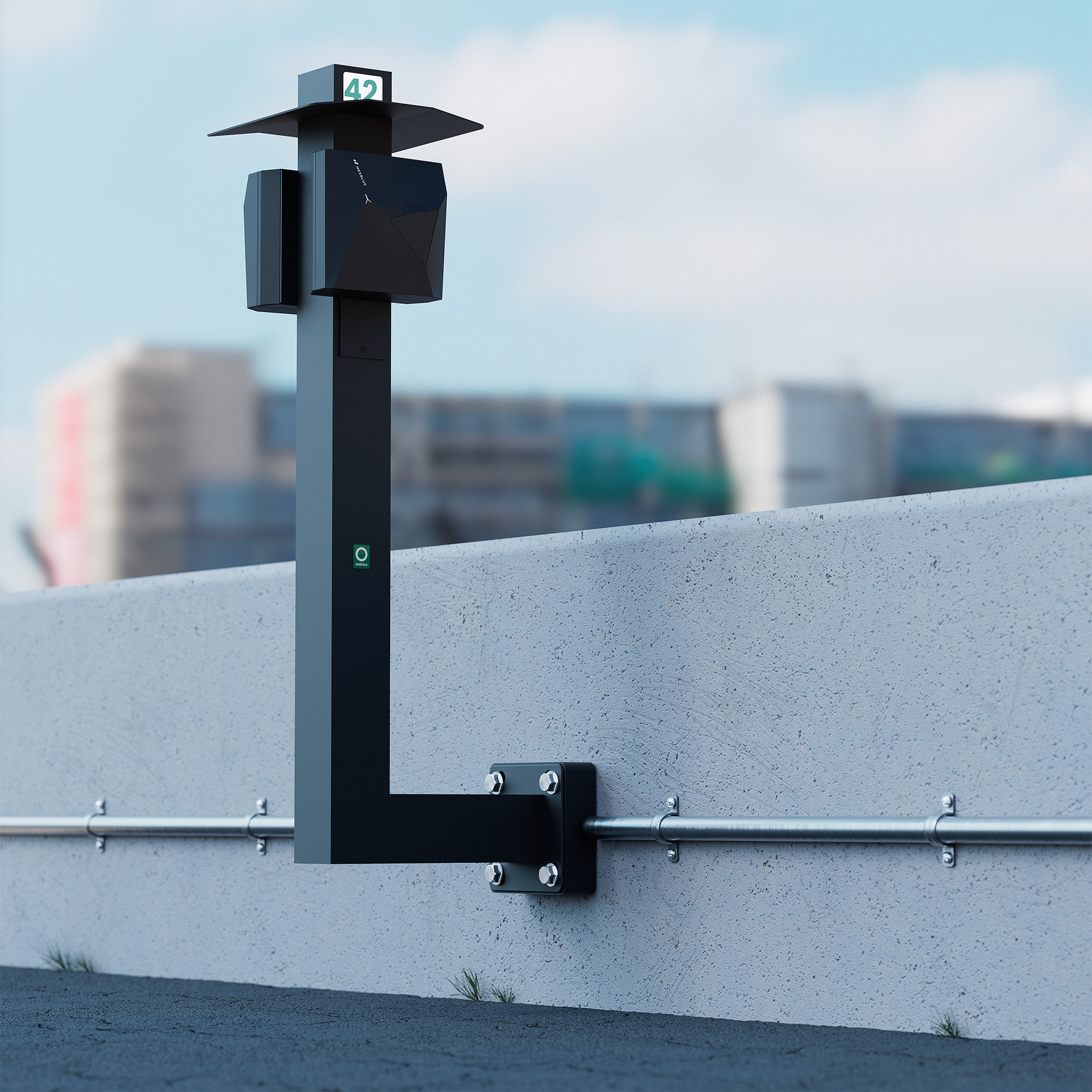 The ONEPOLE base features a custom-designed L-shape with dimensions of 500x1200 mm, offering endless combinations and customization options to suit any project. It can be rotated for ceiling mounting in space-constrained areas, such as parking garages. Crafted from seawater-resistant aluminum and coated with Jotun powdercoat, ONEPOLE provides optimal durability, even in coastal environments. The versatile CC160 footplate design allows for easy installation on both ceilings and floors. For easy cable entry, use the CC160 ceiling/floor adapter art.no Q47JP.